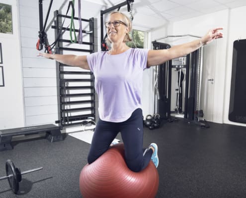 Träna i vårt fräscha välutrustade gym. I lokalen finns bland annat en crosstrainer, roddmaskin, träningscykel, fria tyngder, ribbstol, TRX band, fitnessbollar, kettlebells, balansplattor, gummiband, hopprep och mycket mer.