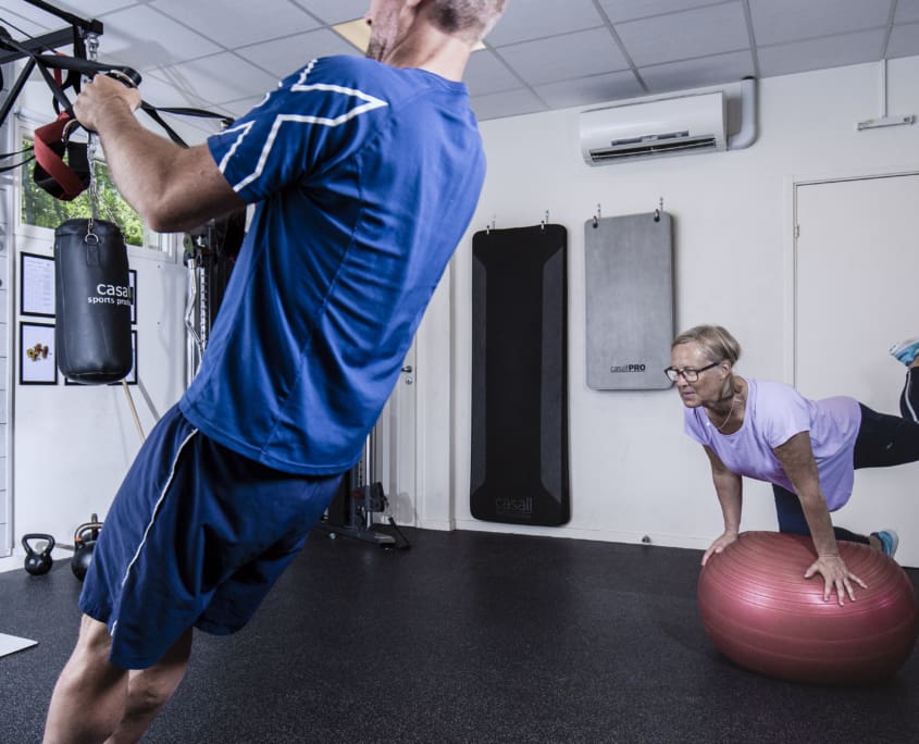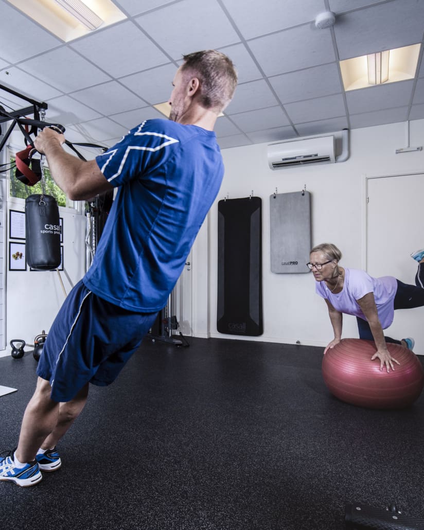 Träna i vårt fräscha välutrustade gym. I lokalen finns bland annat en crosstrainer, roddmaskin, träningscykel, fria tyngder, ribbstol, TRX band, fitnessbollar, kettlebells, balansplattor, gummiband, hopprep och mycket mer.